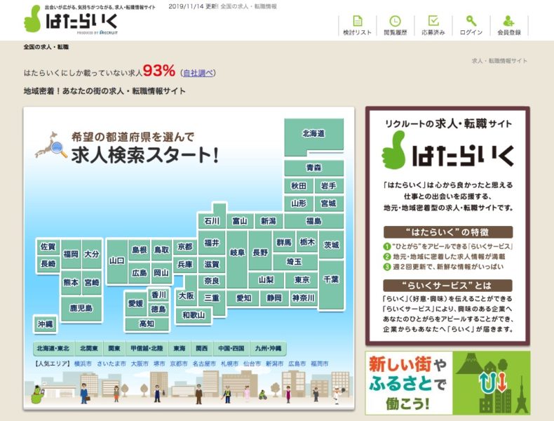 検索 smart choice はたらいく 公式サイトへ 特徴地元でのお仕事探し、地域密着型の求人・転職サイトなら【はたらいく】全国の豊富な求人・転職情報から【地元の仕事】が検索可能!独自の「仕事観検索」では安定性、自分のペース、職場の環境といったあなたの重視する仕事観から検索ができます。 年代 年代不問 女性専門 ー 拠点数 ー 未経験 歓迎 希望業種 一般