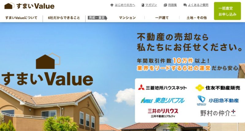 検索 smart choice すまいValue 公式サイトへ 特徴不動産業界をリードする6社が運営する不動産売却の一括査定サイト「すまいValue」。最短60秒でご売却物件の無料一括査定申し込み完了。 取引形態 一括査定 店舗 なし 利用料 無料 資本金 1億円〜 株式上場 グループ上場